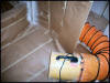 Exhaust Fan: First step is to mask the area, and set up an exhaust fan. The flexible duct leads outside the house, to carry odors away from the living space. This is an important step, if no fan is used, the curing odor can be quite strong. |